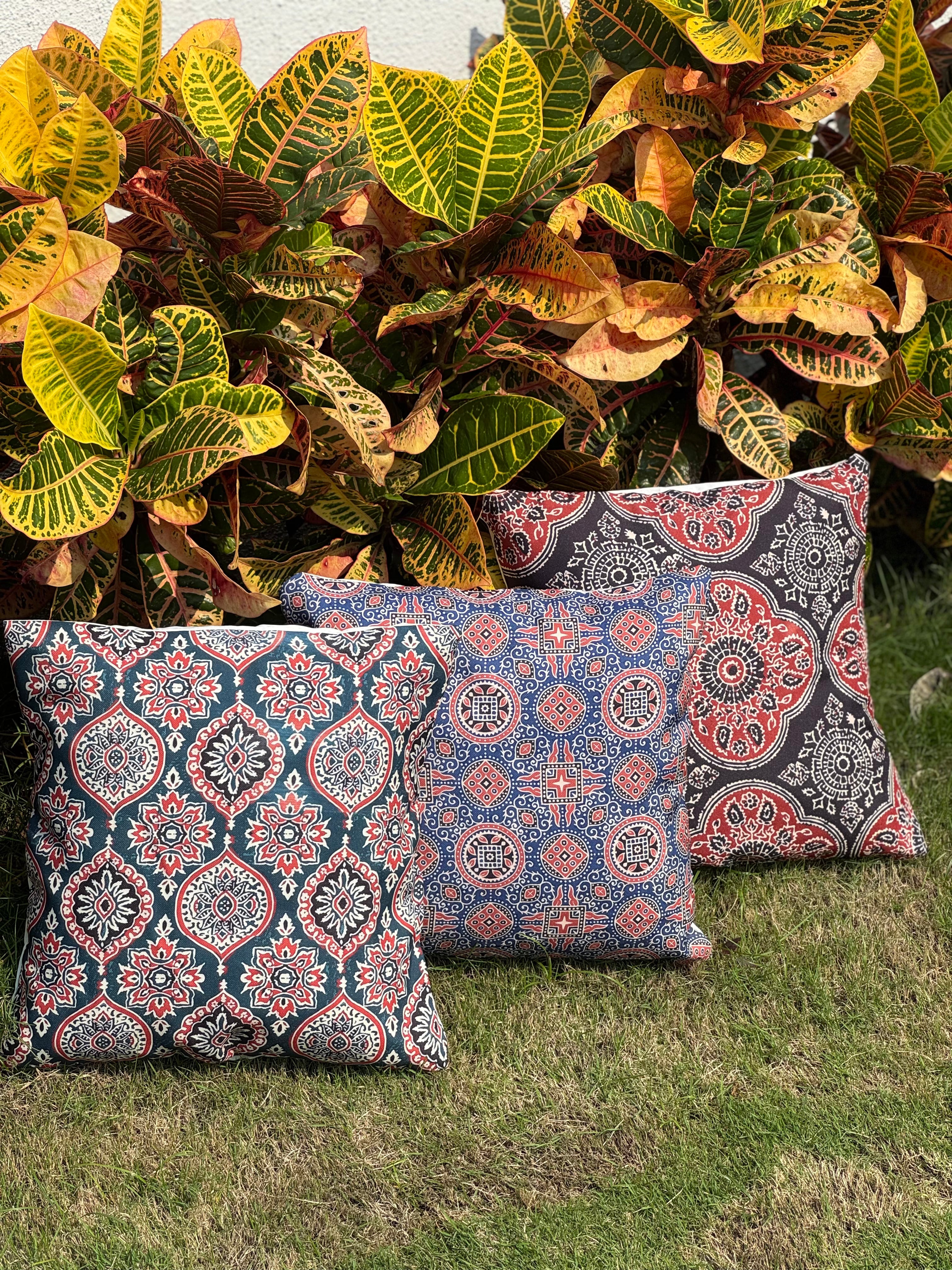 Ajrak-Themed Cushion Covers(Pair of 3)
