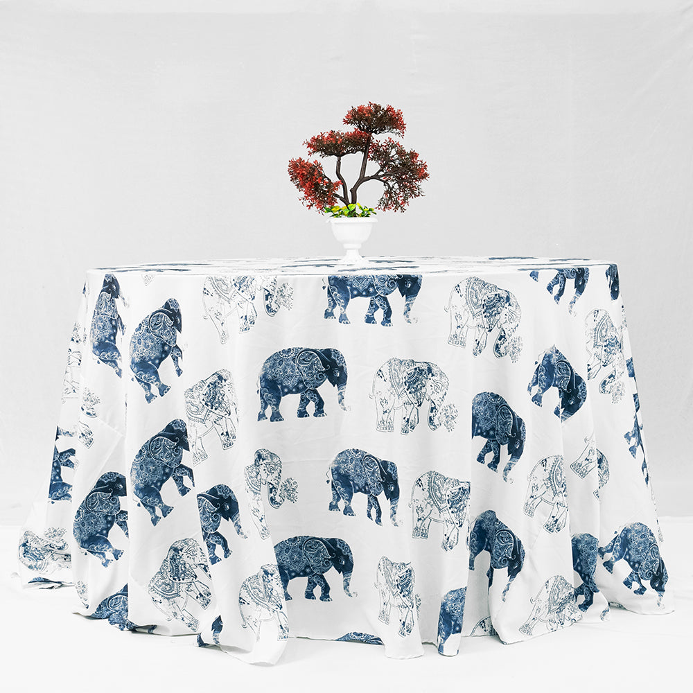 Inspired elephant motifs in Indigo all over a premium fabric make this table-cover one that adds elegance to any kind of decor.
