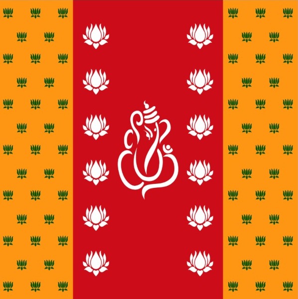 Here is a backdrop with the shades yellow and red. Representing Ganpati Bappa, accentuating the little lotus that surrounds him. This can make the ideal backdrop decoration for your Ganesh Chaturthi Mandap or for your home temple.