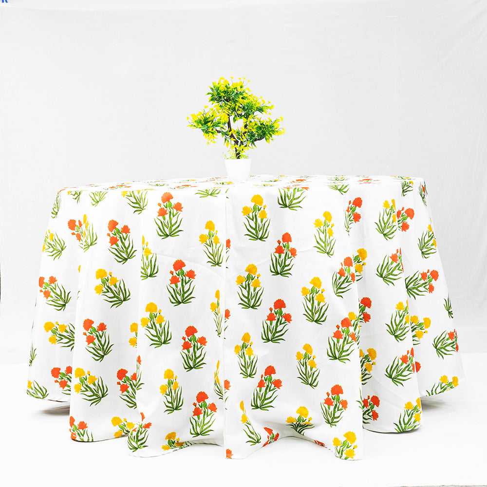 Inspired floral bootas all over a premium ivory fabric make this table-cover one that adds elegance to any kind of decor.