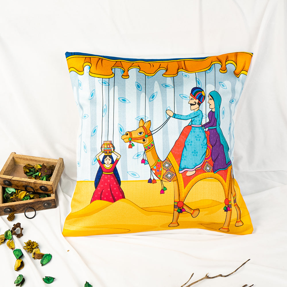 Happy scenes from the village stories make this bohemian cushion a perfect addition to playful decor with a theme!