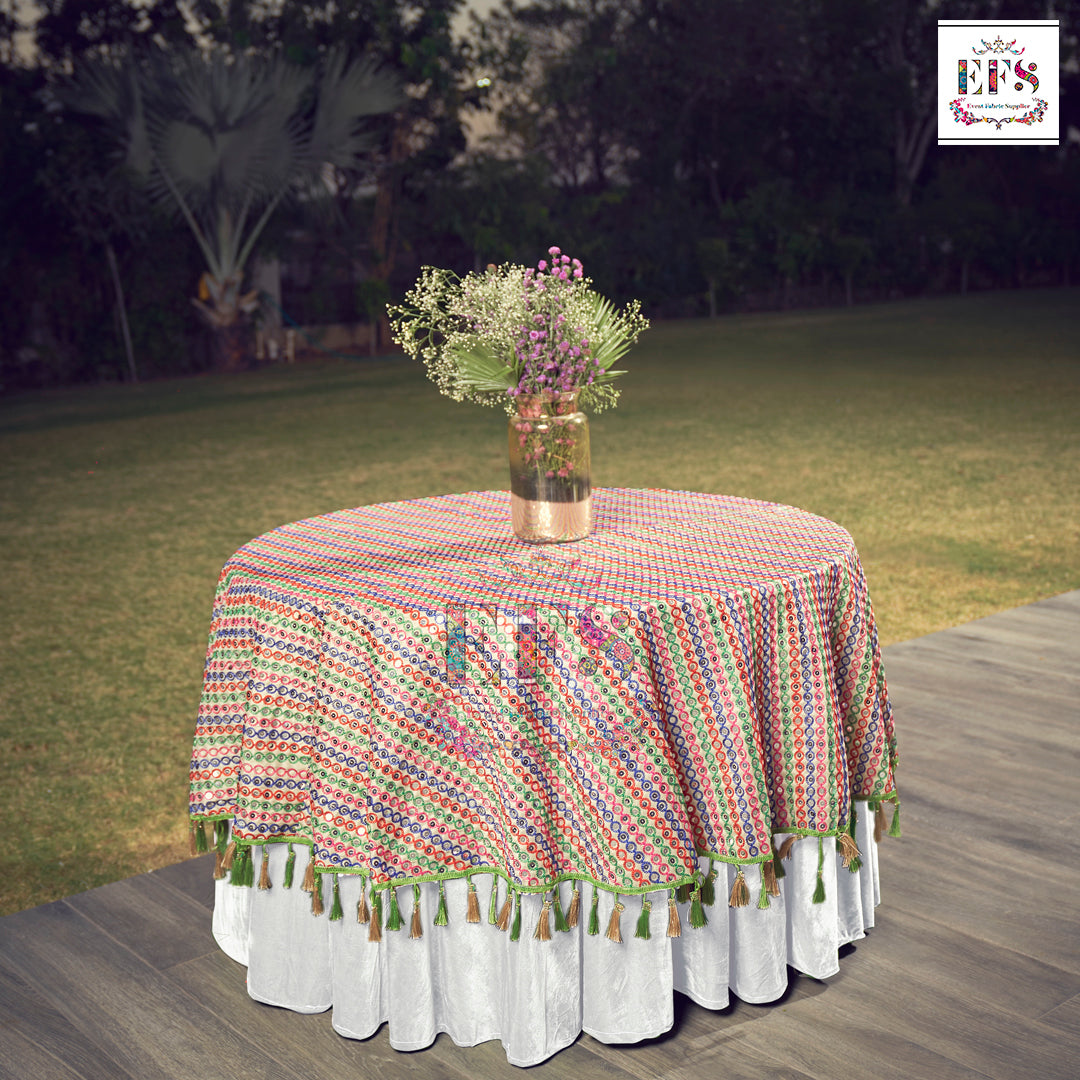 Indian traditional mirror work tablecloth. Let our customize table cover add the beauty to your memorable function.