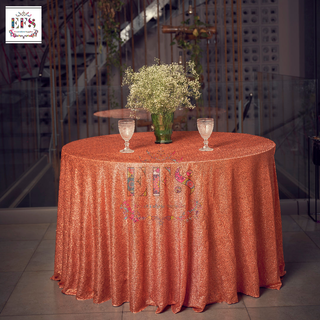 Bringing some extra glam to your event with stunning orange shimmer table cove Table.