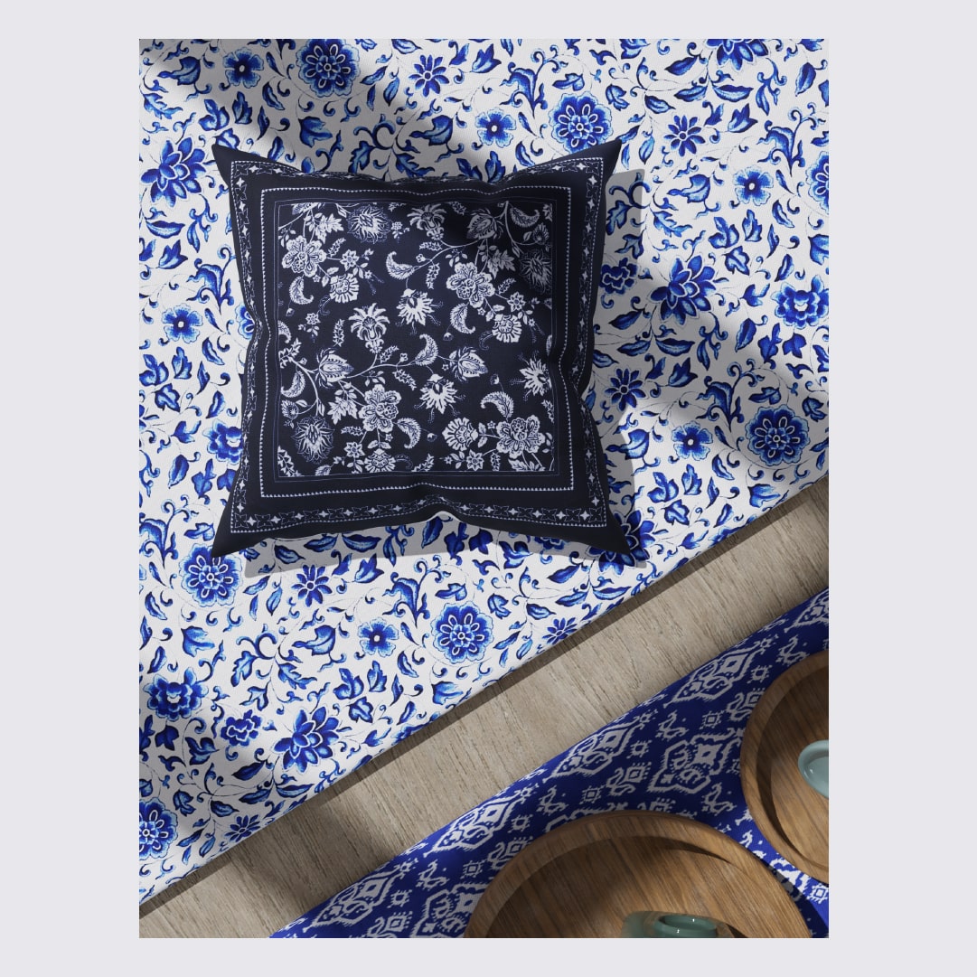 Indigo magic makes this cushion cover with intricate white prints on a deep blue base a classic addition to your cushion collection. Pair it with solids or white prints to bring out a well curated look.