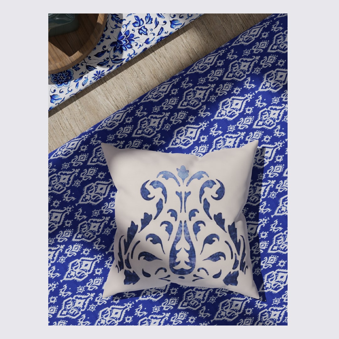 Minimal yet maximal blue motif inspired by heritage architecture makes this white and blue cushion a very eye catching one. It pairs well with our extensive range of blue and white cushion and curates a tasteful look.