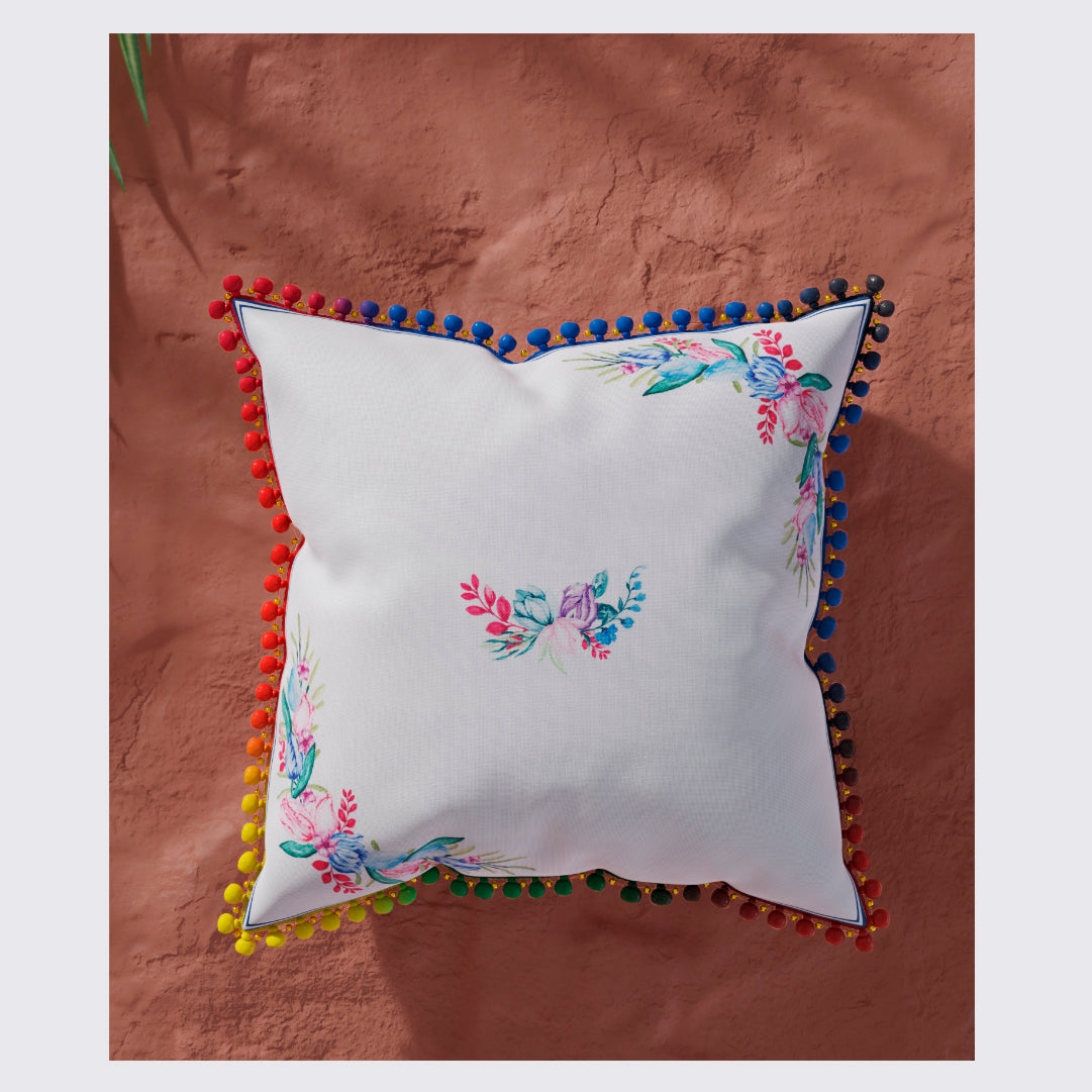 Rainbow like multi coloured ball details at the piping makes this an eye catching drawing room accessory. The soft hues and subtle design is perfect for your intimate spaces.