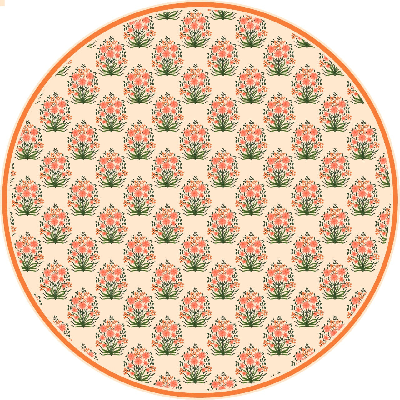 A pretty peachy-floral table cover.