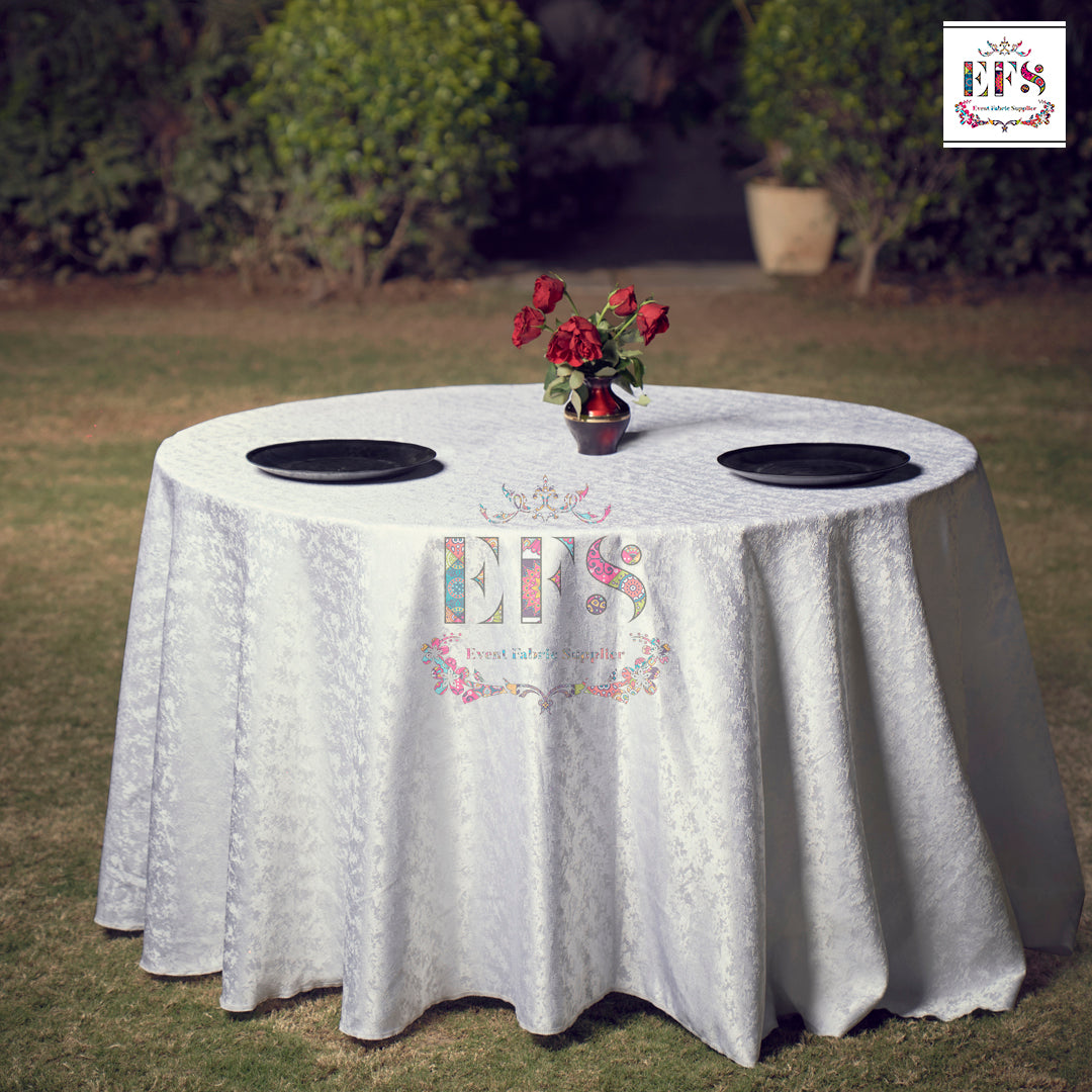 simple white Jacquard Table Cover perfect for all kind of events and weddings.